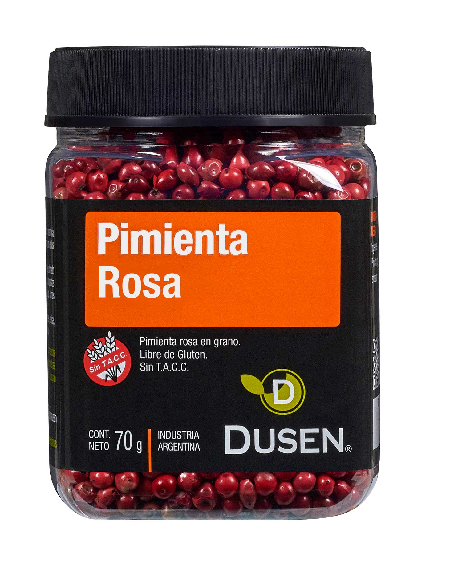 Proviene de la baya seca del Molle, un arbusto originario de Sudamérica. Su sabor recuerda al del ají, aunque más fresco, afrutado y menos picante que el de las pimientas blanca y negra. Por la sutileza de su aroma y picor se la usa en ensaladas y platos suaves como pescados y mariscos. Recomendamos agregarla al final de la cocción, para que conserve su delicado perfume y sabor.
